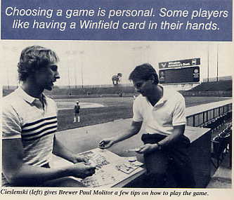 Cieslinski (left) gives Brewer Paul Molitor a few tips on how to